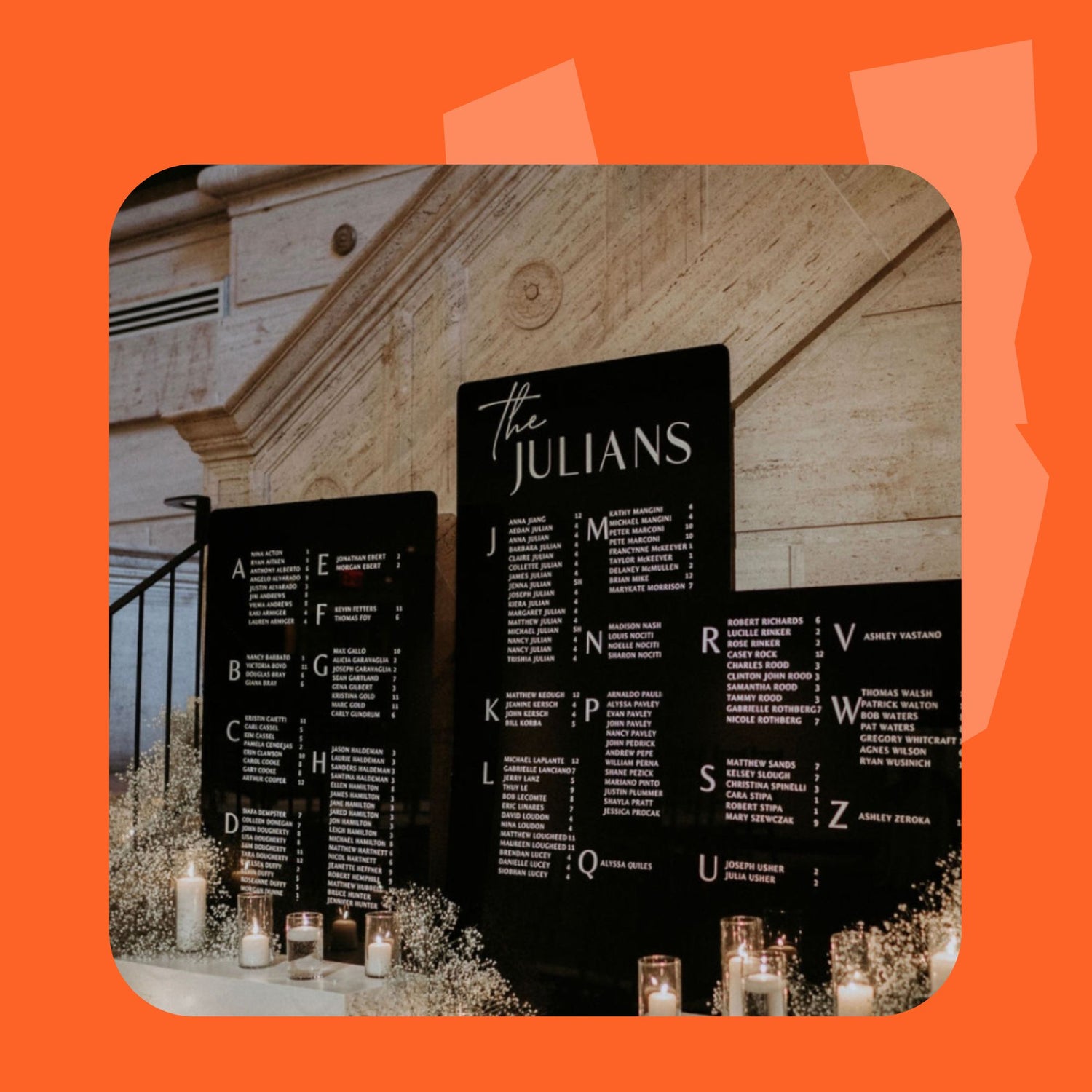 Our escort seating charts play a vital role in setting the tone for the entire reception. It's the first thing guests see upon arrival and can make a lasting impression on their experience.