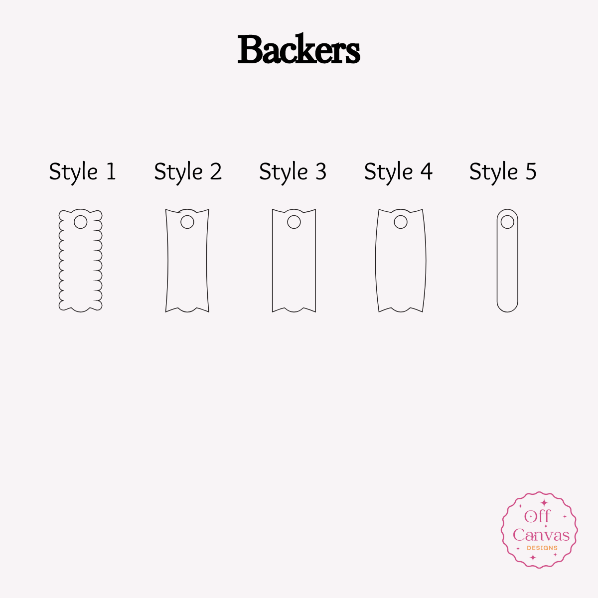 Topper is cut from 1/8" acrylic w/ layered 1/8 acrylic name on top.